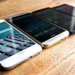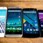 From left to right: HTC One A9, HTC One M9, Google Nexus 5, Sony Xperia Z3 Compact