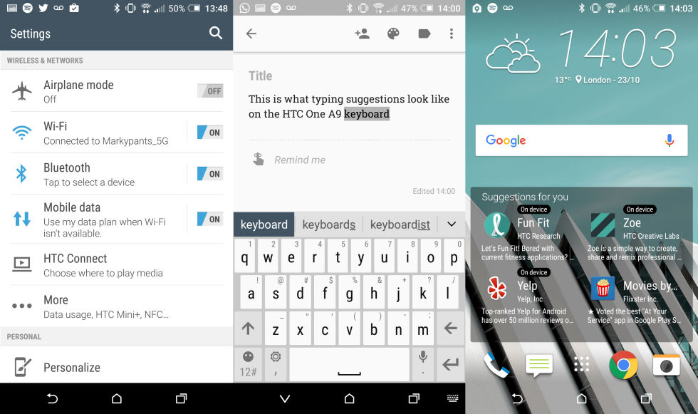 While the latest version of HTC Sense is closer than ever to stock Android, there are still elements of Sense spread across the settings menu, keyboard, and home screen.